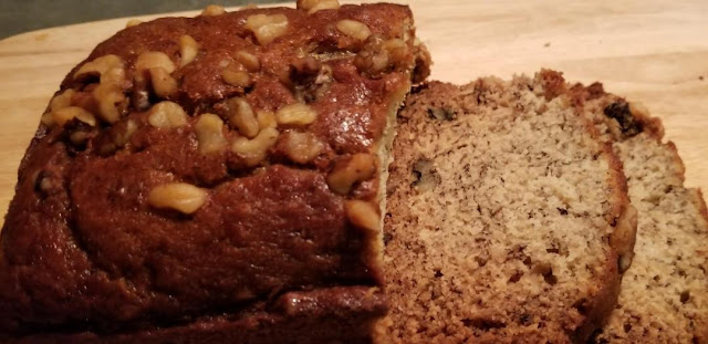 Another banana bread? Like I don't have enough banana bread recipes already! Well, just like I have tons of pound cake recipes the same holds true for banana bread. This one is slightly lighter in the sense that it's not quite as heavy and moist as some. This is the one I prefer simply for that reason. It's also a very simple one where you can add additional ingredients and doctor it up a bit if you like. I firmly believe that you cannot go wrong with simple! This was adapted from Allrecipes with a few of my own changes.